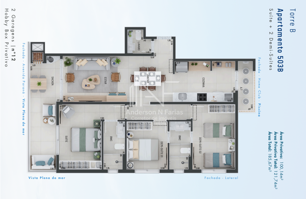 Área Privativa Total: 121,74m²