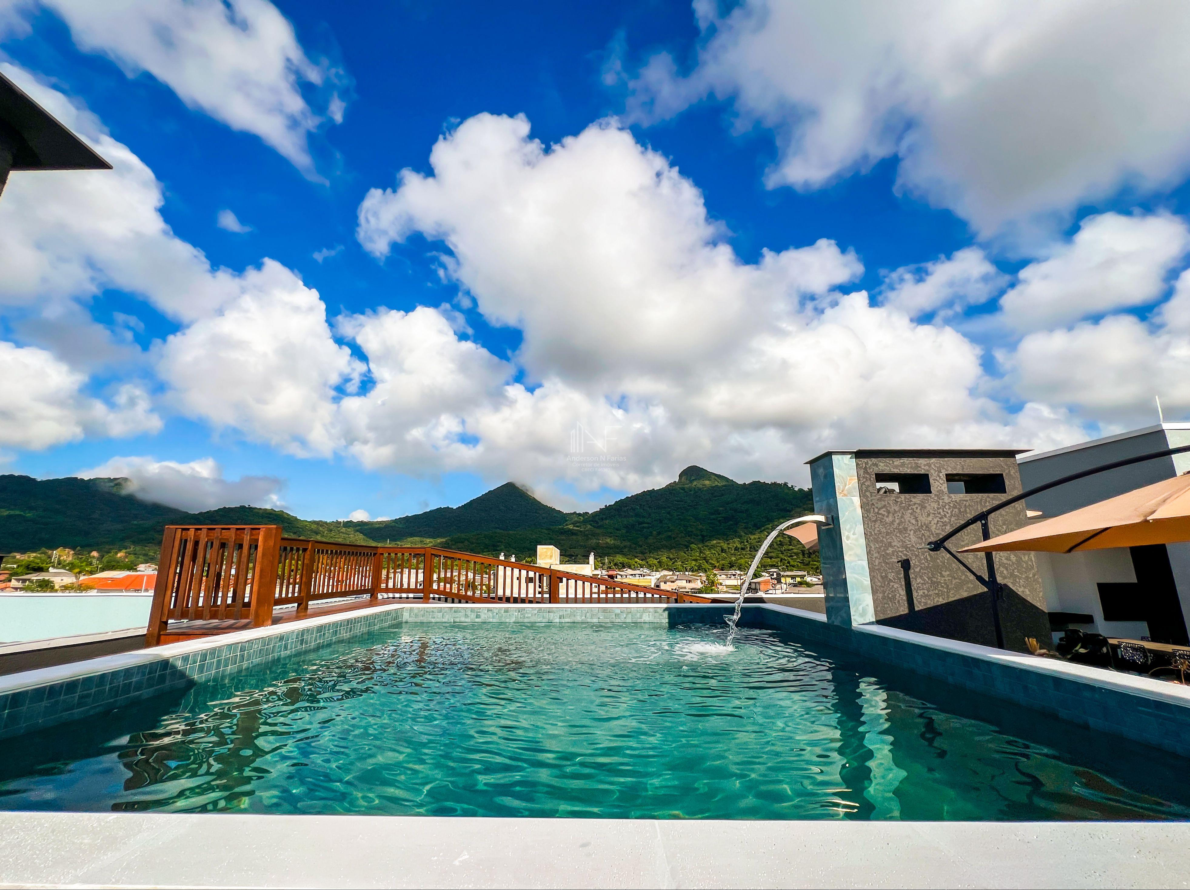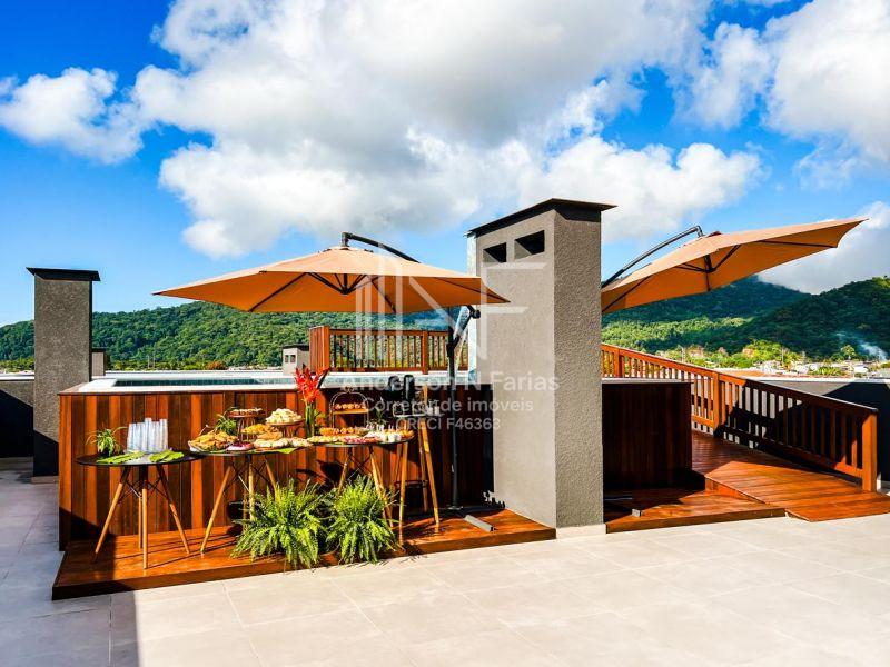 Área de lazer completa no terraço com uma vista maravilhosa