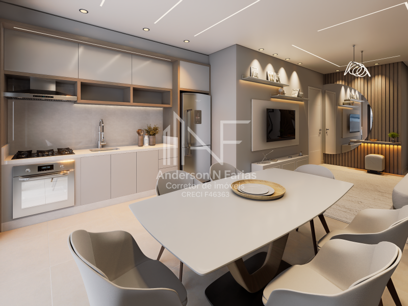 A área social é acolhedora e funcional, com sala de jantar integrada, pensada para valorizar o convívio e o bem-estar. O empreendimento oferece ainda área de lazer com piscina, elevador e garagem privativa com duas vagas, garantindo praticidade, segurança e comodidade.