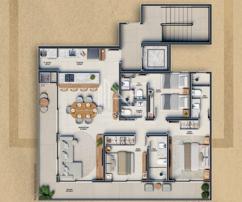 Um projeto onde sala, cozinha e sacada se integram em perfeita harmonia, criando um ambiente amplo, iluminado e verdadeiramente acolhedor.