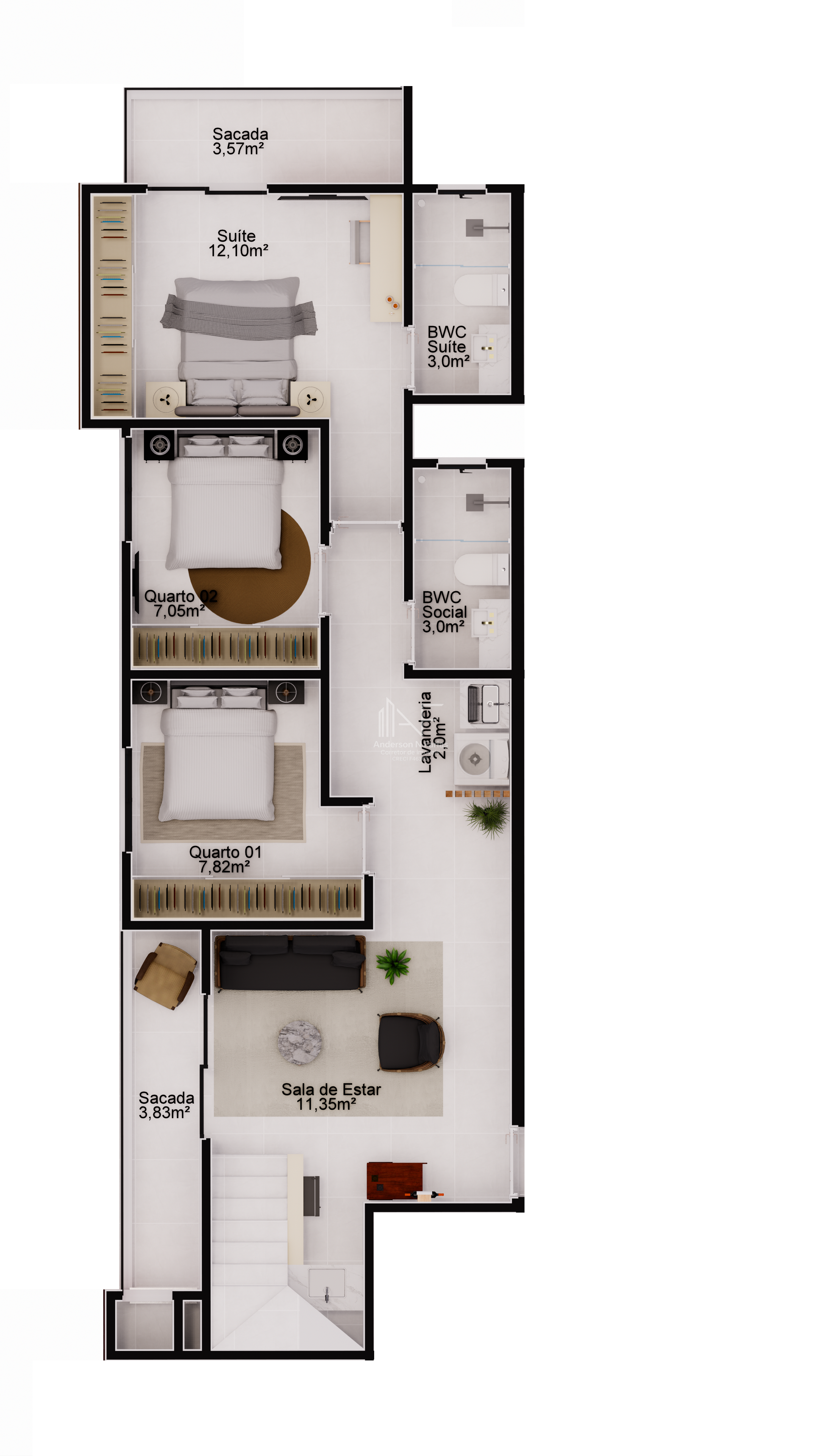 • 03 quartos, sendo 01 suíte elegante e muito confortável